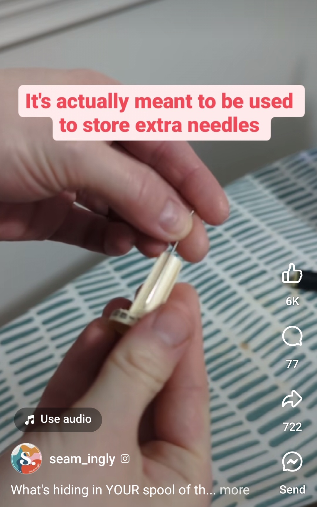 WOW!!! I didn't know about storing your needle too in the detachable end of Guterman thread! I knew about loosening it to get to the hidden thread end.